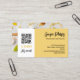 White, black, and yellow business card for any profession with your social media information in the form of your personal QR code and, on the back, a photo. Content creator business card with a charming brush script, yellow accent color, cute social media icons, and your QR code. Just add the link you want!