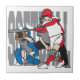 Sportaktion zum Zeitpunkt der Auswirkung! Softballspieler, der am Ball zum Zeitpunkt des Kontaktes mit Softballfänger und -Schiedsrichter jammert! großer SOFTBALL-Text im Hintergrund, Geschenken eines in den großen Softballs für Softballspieler und in den Softballfans!