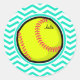 Softball; Aqua Green Zickzack Runder Aufkleber