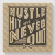 Softball Baseball Hustle, Hit & Nie kündigen Stone Untersetzer. Text liest: Stress, Hit und nie aufhören, mit gekreuztem Baseball und Softball Fledermäuse Symbol.