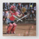 Mädchen Softball-Fänger kurz davor, den Ball zu fangen. Comic Bucheffekt auf Catcher in Aktion.