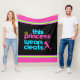 Softball-Fleecedecke des Mädchens mit dem Text, "diese Prinzessin Wears Cleats" in rosa, in Blauem und Gelb über einem dunklen Hintergrund.