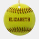 Softball-kundenspezifischer Ball-Verzierungsgelbball mit braunem Text, den Sie mit Ihrem eigenen Namen personifizieren können. Perfektes Geschenk zum Softballspieler