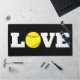 Eine lustige LIEBE-Tischmatte für jeden Softball-Spieler oder Softball-Trainer, mit LIEBE in fett weißem Text und einer Fastpech-Softball-Grafik anstelle des O. Ideal für Zuhause oder im Büro des Softball-Trainers.