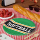 Dieses sportliche, sportliche Design mit fett formatiertem SOFTBALL-Text in einem schwarzen, hervorgehobenen Streifen mit zwei weißen und gelben Rennstreifen und leuchtend grünen Streifen. Der Text in diesem Design kann personalisiert sein.