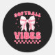 Softball Vibes Softball Couqette Groovy Softball G Runder Aufkleber