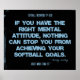 Dieses motivierend Softball-Poster enthält ein Softball-Zitat des Autors und Designers Felicity Luckey für Trainer, Spieler und Teammotivation. Das Bild ist von einem "zerrissen" für Fitness-Erfolgsstoff mit "lose-gewinde"-Schrift. Es gibt insgesamt 12 Softball-Zitate in dieser Great Minds Think Fit™ Serie. Die Softball-Plakate sind in kräftigen, fett gedruckten Farben, dunkelblau-blau und als Multi-Zitat-Collagen erhältlich. Das motivierend Zitat auf diesem Softball-Poster lautet: "Wenn du die richtige geistige Einstellung hast, kann dir nichts davon abhalten, deine Softballziele zu erreichen." ~ Felicity Luckey