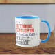 Fun-Nachricht auf einer Tasse für einen Software-Entwickler. Es heißt "Sie können mich einen Wunderarbeiter nennen".