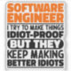 Die Redewendungen des Software Engineers "Software Engineer I try to make matters idiot proof but they Behalt make better idiots". Nimm dieses lustige Software Engineer Design als lustige Geschenke für eine phantastische Mutter, einen Vater oder einen Freund.