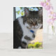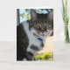 Diese leere und individuell anpassbare Grußkarte zeigt unsere süße Katze Softy. Softy's schöne grüne Marmoraugen blicken in die eigene, während sie am Fenster sitzt und die coole Brise genießt. Dieses Bild wurde von meinem Sohn David Mann aufgenommen und ist perfekt für Katzenliebhaber.