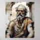 Dieses Kunstwerk wurde als ein Gemeinschaftsprojekt mit meinem Partner, einem Ölmaler, geschaffen. Ich generiere für ihn häufig Bilder als Malreferenzen. Nachdem er zuvor mehrere Sokrates-Portraits mit generativen KI-Modellen erstellt hatte, favorisierte er ein Stück in diesem malerischen Stil, das er dann zu einem Ölgemälde umgestaltete. Beide Kunstwerke sind für sich genommen außergewöhnlich. Angesichts des Interesses an Druckgrafiken und des Mangels an Druckerei bei meinem Partner biete ich meine Version als Druck an.