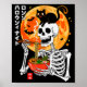 Soky Skeleton Eating Ramen Bowl With Cat Halloween Poster