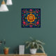Volkskunst Charme mit solarpunk-Futurismus vermischt, um Ihre Wand zu erhellen. Dieses strahlende Sonnengesicht auf einem Solarpaneel strahlt mit Energie und botanischer Freude.