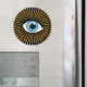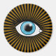 Solar Blue Eye faszinierende Augenillustrierung des blauen Auges mit dunkelgoldenen Sonnenstrahlen. Mythologie ein Aspekt der Sonne wird als Auge vor einem Hintergrund von Sonnenstrahlen dargestellt, die überall herumstrahlend. esoterische dritte Augen Heide kann ein neues alterliches Symbol des Bewusstseinssymbols von Psyche und Bewusstsein oder Bewusstsein abseits des Bösen mit dem Symbol des Schutzes vor dem bösen Auge des Wassers oder Symbol für Wasser für das Wasser