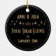 Dieses Sonnenfinsternornament mit einer goldenen Abbildung einer Sonnenfinsternis, umgeben von Himmelsstern, ist das perfekte Souvenir, um sich an Ihre Totalaussichtsveranstaltung für die kommenden Jahre zu erinnern. Feiern Sie stilvoll für diese seltene Finsternis-Erfahrung. Ändern Sie den schwarzen Hintergrund in eine Farbe, die Sie Anzug. Das sieht in vielen dunklen Farben gut aus, darunter tiefgrüner Wald, dunkelblau und dunkelgrau. Passen Sie den Text auf Vorder- und Rückseite mit Ihren persönlichen Daten und dem Betrachtungsort an. Ideal für Gruppen, Organisationen und Ansammlungen. Und vergessen Sie nicht, passende Shirts, Knöpfe und Zubehör in meiner Eclipse Collection.