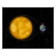 Die Erde wird von der Sonne mit Jumperkabeln aufgeladen, um sich mit den Erdästen zu verbinden, oben rot, unten schwarz.