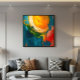 Eine lodernde Sonne bricht durch Wellen von Farbe und Energie, als ob die Welt in lebendigen Pinselstrichen geboren würde. Die Bewegung der Formen evoziert Wind, Meer und Feuer in einem kosmischen Tanz aus Licht und Schöpfung.