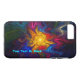 Ein leicht psychedelisches, welliges, wirbelndes, mehrfarbiges Fraktal, das den elektromagnetischen Emissionen der Sonne ähnelt. Das Bild wird auf einem sternförmigen Hintergrund überlagert. Fügen Sie Ihren eigenen Text hinzu.