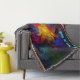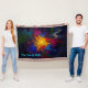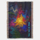 Ein leicht psychedelisches, welliges, wirbelndes, mehrfarbiges Fraktal, das den elektromagnetischen Emissionen der Sonne ähnelt. Das Bild wird auf einem sternförmigen Hintergrund überlagert. Fügen Sie Ihren eigenen Text hinzu.