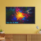 Ein leicht psychedelisches, welliges, wirbelndes, mehrfarbiges Fraktal, das den elektromagnetischen Emissionen der Sonne ähnelt. Das Bild wird auf einem sternförmigen Hintergrund überlagert. Fügen Sie Ihren eigenen Text hinzu.