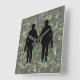 Soldat/Krieger-Silhouette mit Camouflage Quadratische Wanduhr