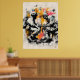 Straßenkunstposter zweier Schachsoldaten, das das Spiel des Powers und die Absurdität des Krieges symbolisiert. Ein gewagtes Schablonenwerk mit Graffiti-Texturen und lebhaften Farbspritzen, ideal für moderne Wände und urbane Kunstsammlungen.
