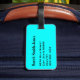 Gepäckanhänger mit Namen und Adresse auf einer soliden aqua blauen Hintergrundfarbe. Personalisieren Sie Ihre Namen- und Adressinformationen mithilfe der einfachen Vorlagen. Schriftart, Schriftart und Schriftart sind individuell einstellbar.
