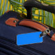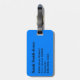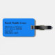 Gepäckanhänger mit Namen und Adresse auf einem massiv azurblauen Hintergrund. Personalisieren Sie Ihre Namen- und Adressinformationen mithilfe der einfachen Vorlagen. Schriftart, Schriftart und Schriftart sind individuell einstellbar.