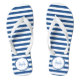 Chic blaue und weiße solide Streifen flip Flops. Personalisieren Sie dieses Kleidungsmuster, indem Sie Ihren Namen und mit Monogramm Initial. Dieses moderne Monogramm-Design ist Teil der Classic Blue Personal Essentials Summer Color Collection.