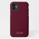 Chic solide Farbe Handy Gehäuse in bordeauxrot, mein Lieblings-Schatten dunkelrot. Eine wunderschöne Weinfarbe mit Ihrem hübschen, individuellen Monogramm. Personalisieren Sie mit Ihrem Namen in elegantem weißem Skript.