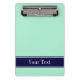 Solid Light Mint, Navy Blue Ribbon Name Monogram Mini Klemmbrett