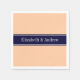 Solid Peach, Navy Blue Ribbon Name Monogram Serviette