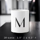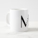 Jumbo Coffee Mug with classic solid white background and black lettering in the center .Simple design with strict look by Alma Wad .Personalize it with your monogram now . Perfect for big coffee or tea drinkers, soup lovers, long-hour workers, students, creatives, and anyone who prefers fewer refills and a bold, comforting mug for busy mornings or late nights.