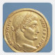 Roman Solidus (obverse) von Konstantin I, der Große (306-337) mit einem Lorbeerkranz. Anmeldung: CONSTANTINVS P F AVG befindet sich in einer privaten Sammlung. Der Solidus (obverse) von Konstantin I, der Große (306-337) mit einem Lorbeerkranz. Inschrift: CONSTANTINVS P F AVG wurde um das 4. Jahrhundert gegründet.