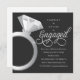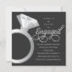 Dieses Engagement Party Einladung enthält einen großen solitaire Verlobung Ring auf der links und das Wort "verlobt" in einem Wirblen Skript auf der rechten Seite. Beide können skaliert und neu positioniert werden, und die Hintergrundfarbe und die Textfelder können nach Ihren Wünschen geändert werden. Grafik © Dream Loft