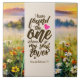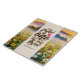 Keramik-Fliesen mit inspirierender Zitat-Schrift zeigen eine wunderschöne Naturwasserfarbe mit einer Wiese mit weißen und gelben Wildblumen und einem Sonnenaufgang über den Bergen im Hintergrund. Es enthält einen geliebten Bibelvers aus Solomon 3:4-Song, "Ich habe den gefunden, den mein Soul Liebe."