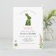 Some bunny is turning one, cute hand painted Watercolor Topiary Rabbit Kids Birthday invitation.