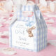 These charming 1st birthday party favor boxes feature a cute bunny holding balloons and a blue gingham background. Designed by Thisisnotme©