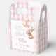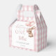 These charming 1st birthday party favor boxes feature a cute bunny holding balloons and a pink gingham background. Designed by Thisisnotme©
