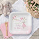 Add a sweet and elegant touch to your baby girl’s first birthday table with these personalized “Some Bunny Is Turning One” paper plates. Featuring a watercolor bunny in a blush pink dress, delicate floral accents, and a classic pink bow, these plates are perfect for a charming bunny-themed first birthday celebration.
