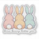 Bring a little seasonal sweetness to your day with this adorable contour‑cut sticker featuring three pastel bunnies sitting side‑by‑side with their fluffy tails and long ears. Soft pink, pale yellow, and gentle blue create a cheerful trio, all paired with the phrase “Some bunny loves you.” The clean white outline makes the artwork pop on laptops, water bottles, notebooks, planners, and gift packaging. It’s also perfect for sealing Easter cards, springtime party invitations, treat bags, or small holiday gifts—it's a cute finishing touch that adds instant charm and whimsy to your Easter season.