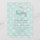 Somebunny ist auf dem Weg, Baby Dusche Einladung für Ihr Baby oder Baby Junge. Niedlicher Hasen auf Polkandots in Minze und Rosa, einfach und modern.
