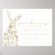 Feiern Sie Ihr Baby in diesem Frühjahr mit unserem eleganten, einfachen und modernen "Somebunny" Frühjahrsdesign. Dieses horizontale Design zeichnet sich durch eine hübsche neutrale Farbpalette aus, mit einem süßen Hasen und goldener Typografie. Dieses Produkt ist perfekt für Ihr Baby-Duschbad-Begrüßungsschild - grüßen Sie Ihre Gäste mit einem On-Theme & Begrüßungsschild.