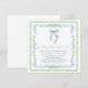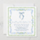 Chic and whimsical square bridal shower invitation with a vintage grandmillenial-inspired design featuring watercolor illustrations of a green scalloped and delicate blue floral frame and a blue coquette bow, "something blue before I do" showcased in a blue calligraphy script, and the name of the bride and shower details in classic serif typography.