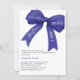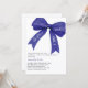 Ein eleganter weißer Hintergrund, der mit einem großen dunkelblauen Bogen verziert ist. Personalisieren und fügen Sie einen Namen und Party-Details hinzu. Text: Etwas Blau bevor ich es tue.
