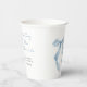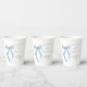 Elegant paper cups for your bridal shower featuring a watercolor illustration of vintage Grandmillenial-inspired blue coquette bow, "something blue before I do" in a chic blue calligraphy script, and the bride's name and shower date in classic serif typography.