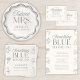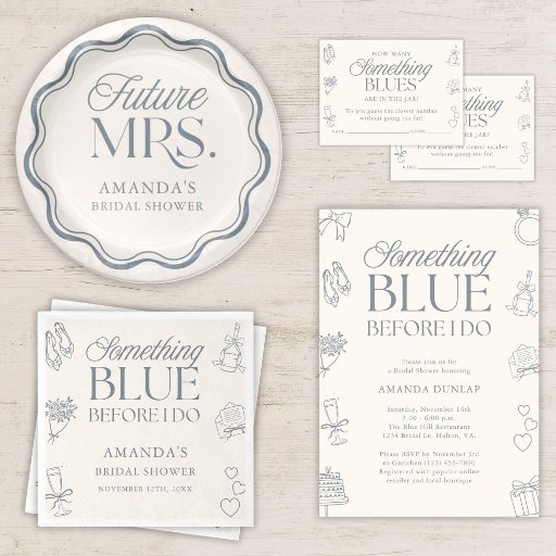 Something blue bridal shower guessing game enclosure cards are the perfect addition to any something blue before I do themed bridal shower. These game cards feature a hand drawn blue design that will go perfectly with any of your other bridal shower supplies and decorations.