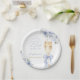 Celebrate with style using these elegant paper plates, adorned with a dusty blue bow on a champagne glass and blue florals — perfect for a bridal shower brunch or bubbly bar.