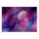 Vor einem Hintergrund königsblauer und faszinierender, heißrosa Wolken wie entfernter Galaxien ist ein Single glatter Glasorb mit einem wirbelnden Fraktal, das innen aufgehängt ist.