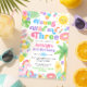 ☀️ feiern 🌸 mit dieser bezaubernden Einladung zum Jungen, Wilden und Drei Geburtstag Ihren kleinen Sonnenschein! Mit leuchtenden Aquarellbildern - Lächelnde Sonne, ein Einhornschwimmbecken, süße Leckereien, Aquarellschwimmbecken, tropische Blume und sonnige Sonnenbäder - lädt dieser Sommergeburtstag zu einem angenehmen Sonnentag ein! 🌈 🦄 perfekt für: ・ Beach Geburtstage ・ Pool Party Geburtstag ・ Sommerthema 3. Geburtstag